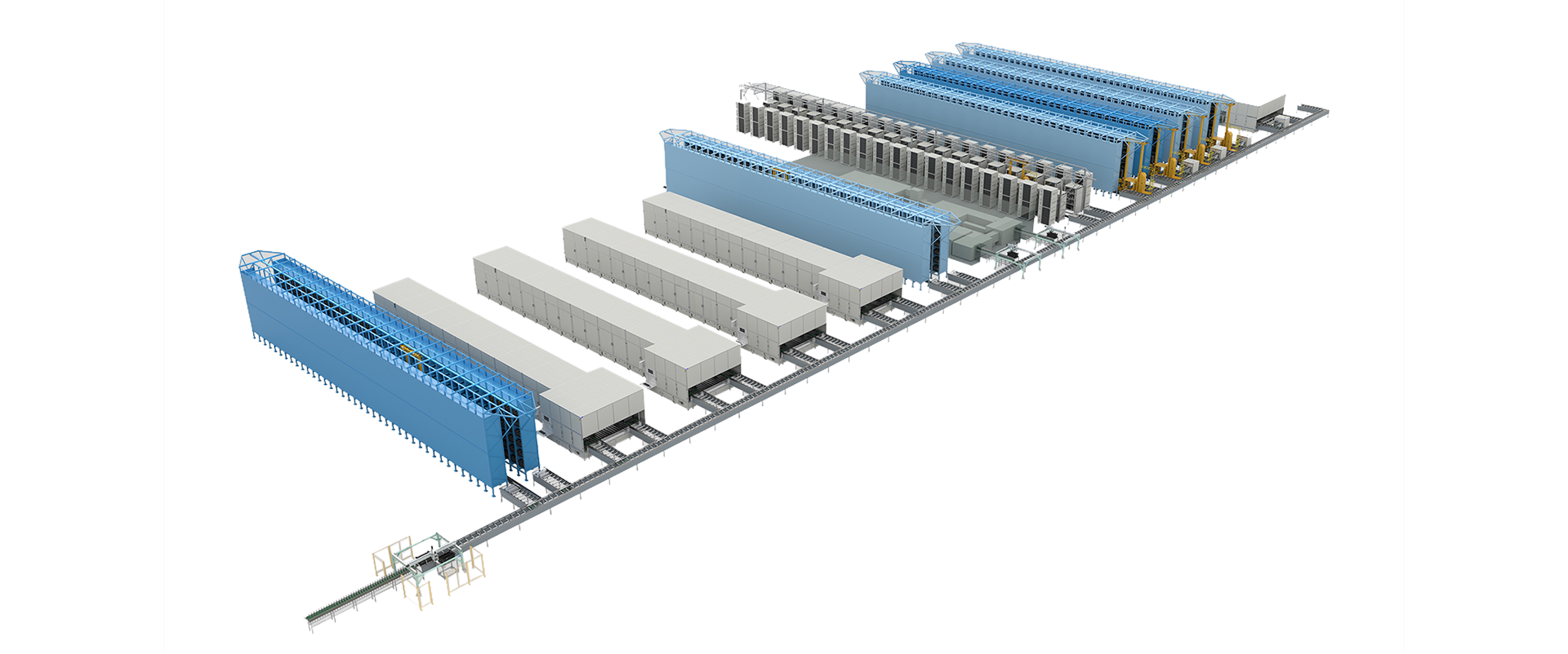 軟包動力電池臥式化成標準機型單機效率可送17PPM,化成分容整線生產效率可達71PPM